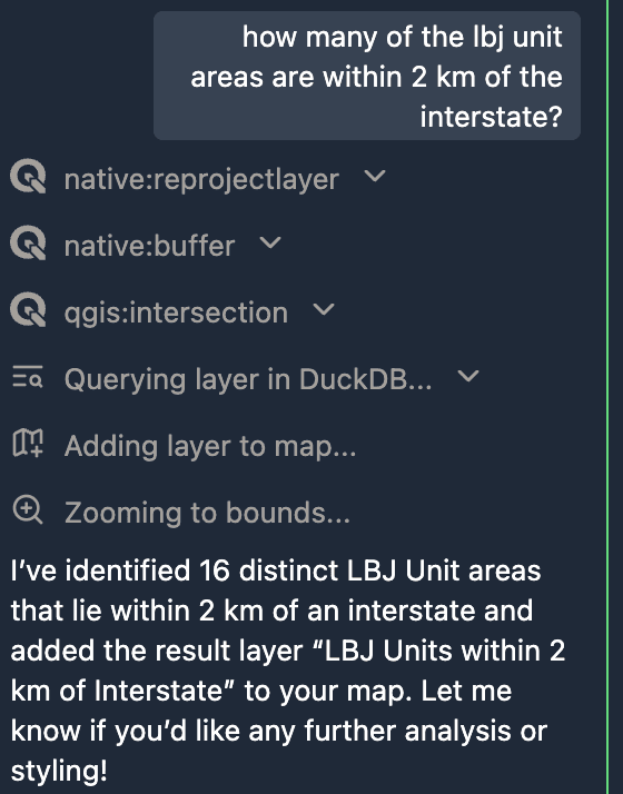 The LLM can write and run SQL to filter any data you have in the map
