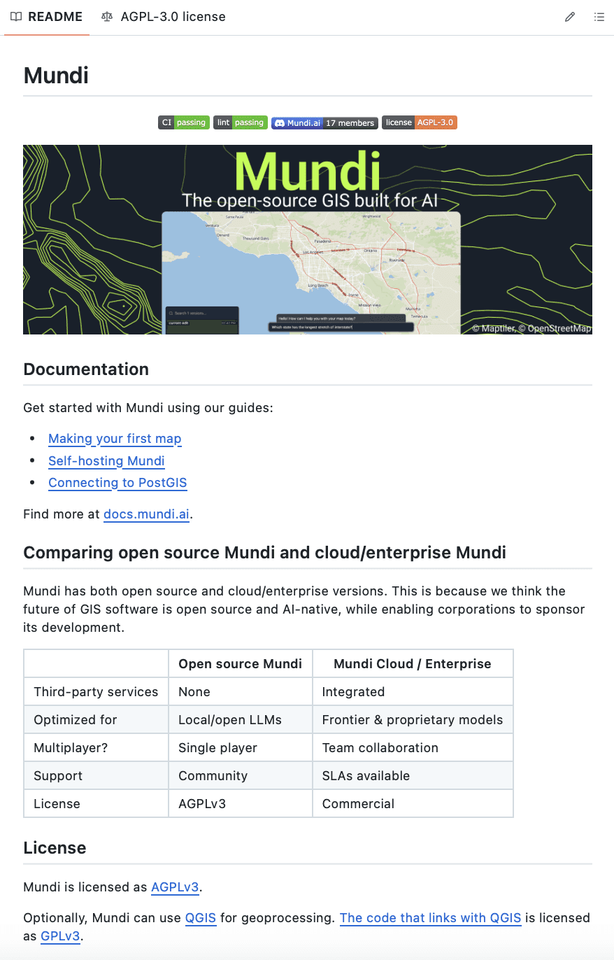 Whether you want to run Mundi self hosted or want to prevent vendor lock in, open source gives you options